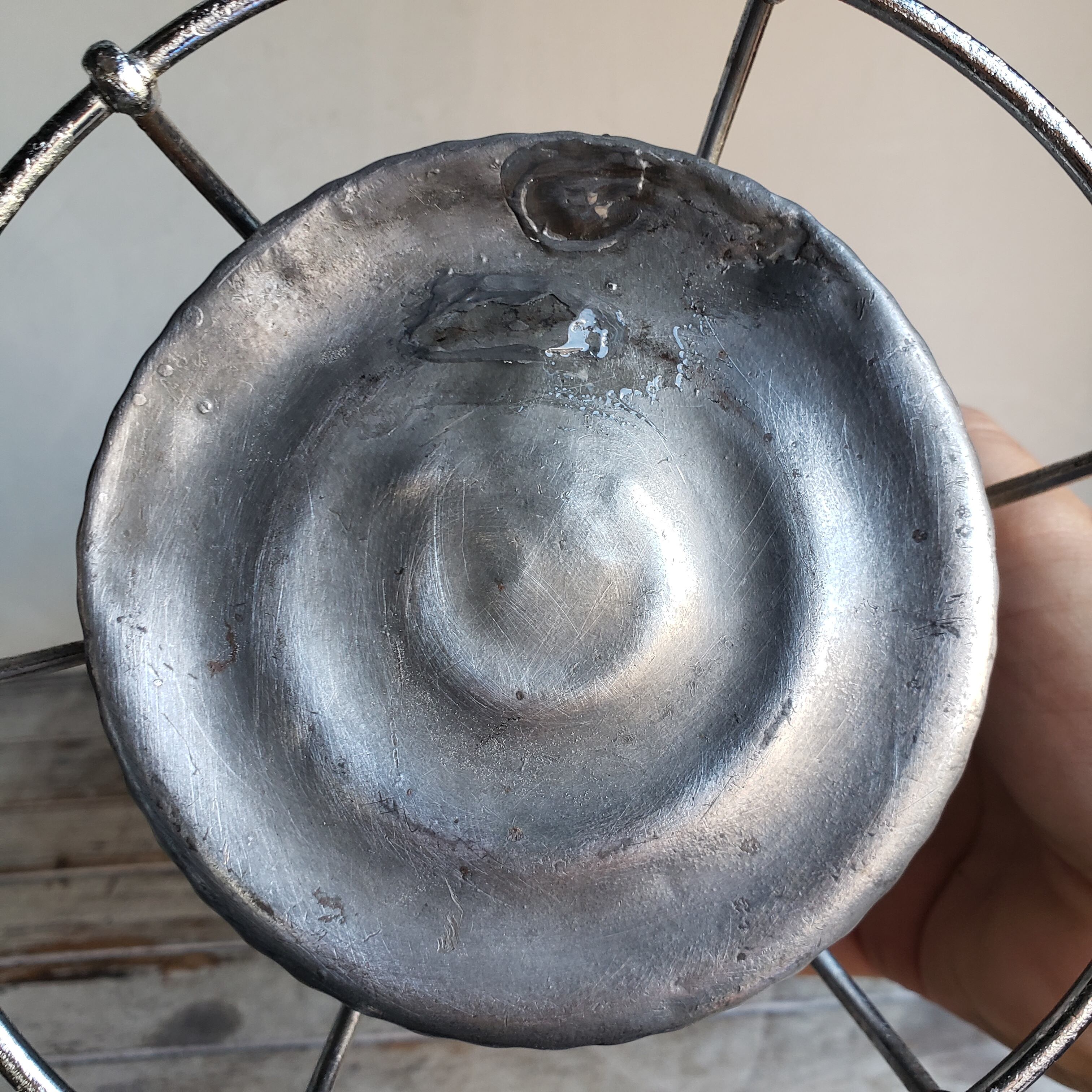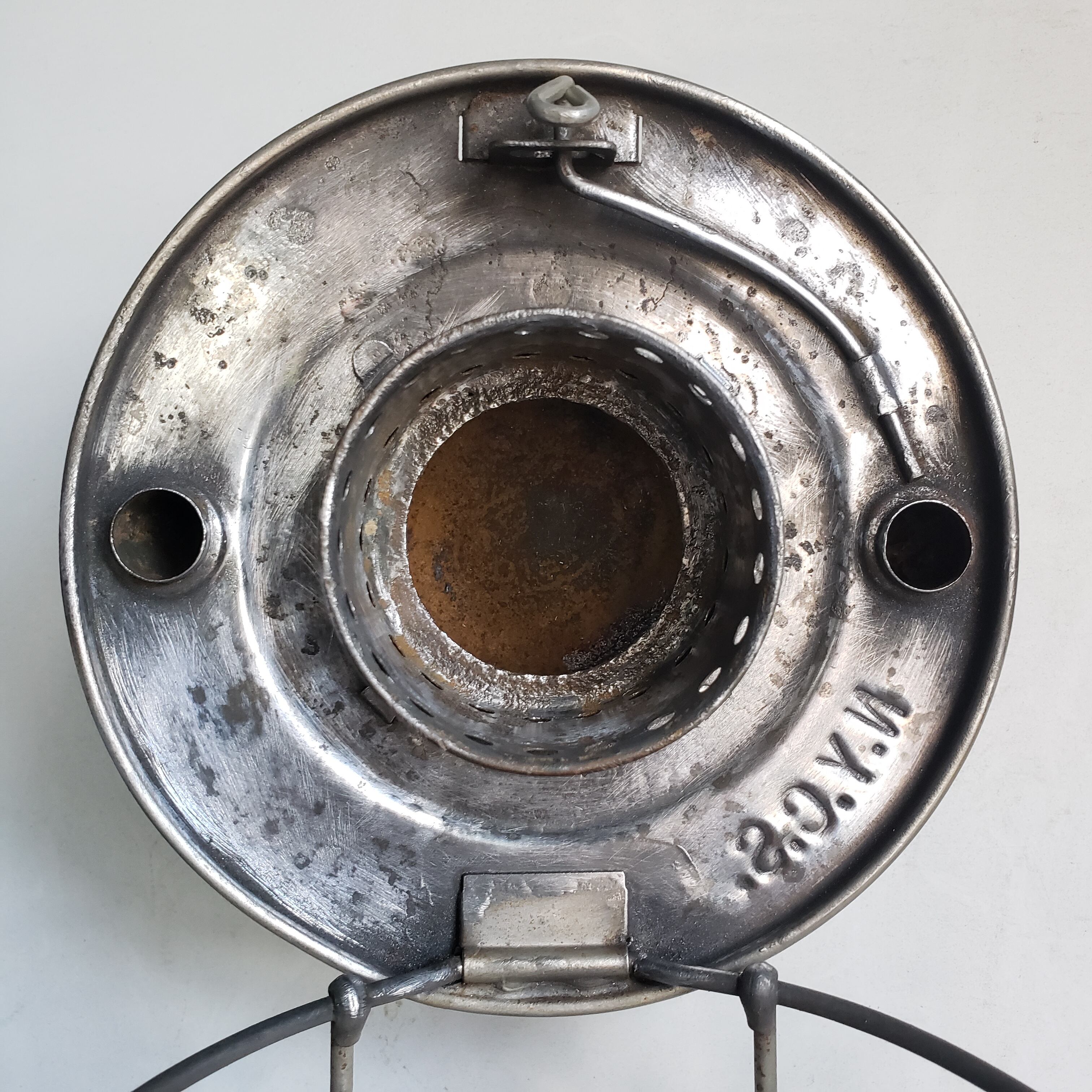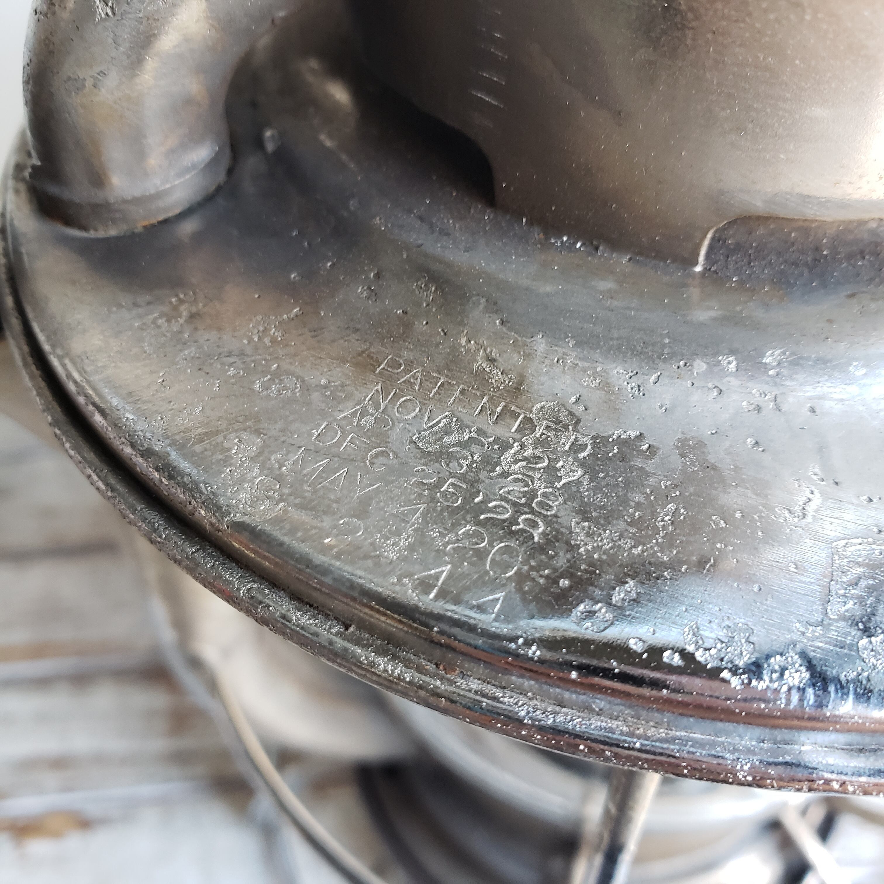 ハンドル、トップ部等にメッキの光沢がありますので、おそらく1度メッキ加工された個体だと推測されます。